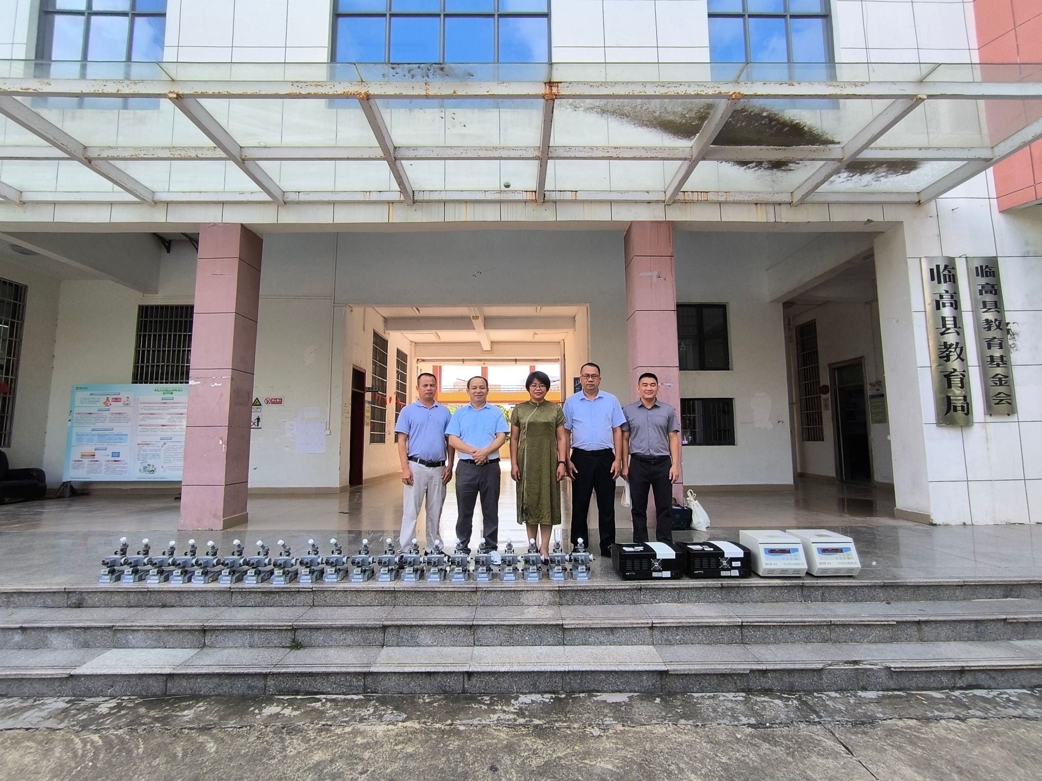 劳邦盛、于雪玥老师作为校方代表,将总价值85,800元的2台离心机、2台紫外可见分光光度计及20台显微镜运送至临高县教育局。设备最终接收方美台中心学校和新盈中心学校代表共同参加仪式。