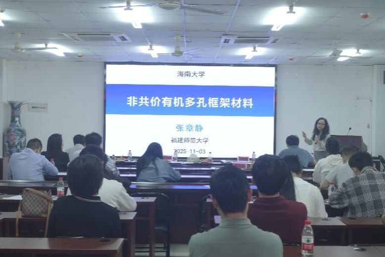 来自大连理工大学的侯军刚教授介绍了近年来他在光电催化水氧化到高值化学品探索的心得。内蒙古大学的刘健教授分享了他在介观多孔纳米反应器化学方面的研究历程。南开大学张振杰教授介绍了他在COF均孔树脂熔融合成与应用方面取得的研究成果。福建师范大学张章静教授分享了她在非共价有机多孔框架材料方面的最新成果。参会师生与各位专家进行了积极的互动交流。