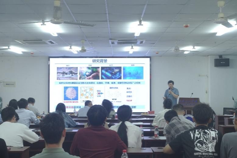青年教师王龙飞汇报了其基于氧化还原/光化学反应设计多刺激响应自旋交叉材料方面的探索和研究规划,与会专家给予了深入指导。