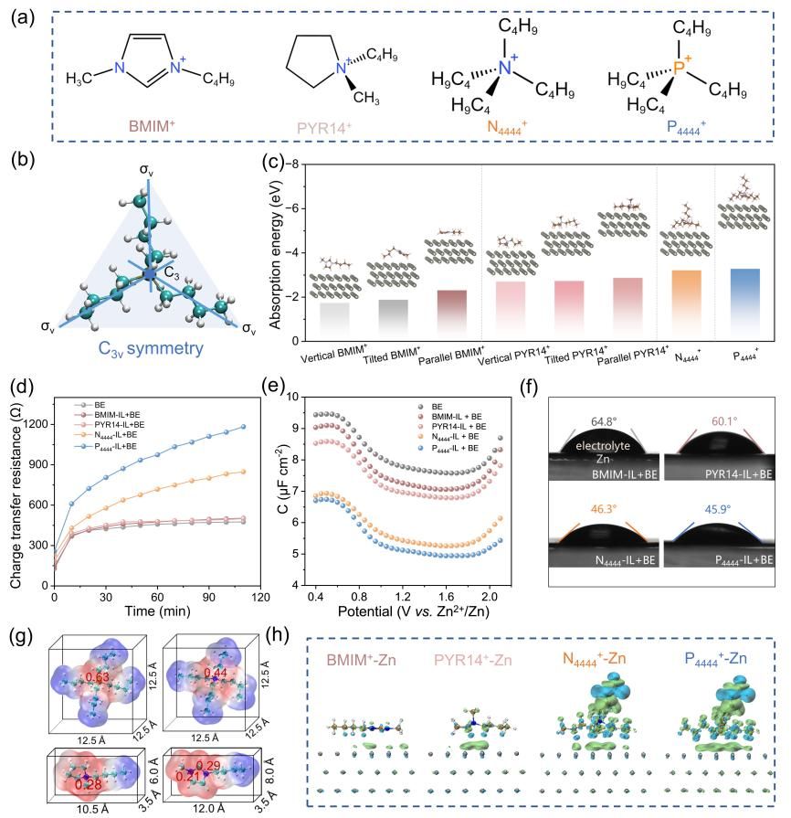 进展一:分子几何匹配助力稳定锌负极:季鏻阳离子添加剂设计新策略
